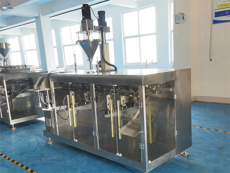 较大规格的粉剂或固体颗粒剂的包装可采用预制袋包装,水平给袋式一级大香蕉黄片采用直线式布局,具有结构紧凑占地空间小,易于与上下游生产线设备对接联动,实现自动化包装生产线。